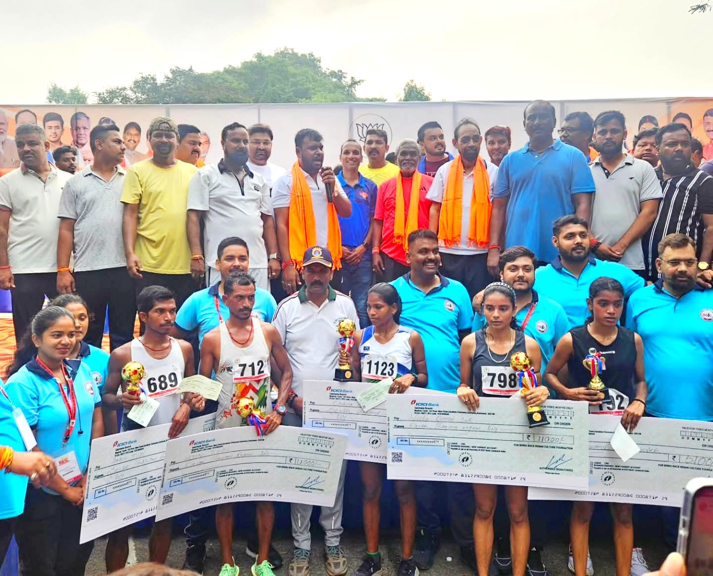 पुरुष एवं महिला वर्ग में आयोजित दौड़ के विजेताओं को नकद पुरस्कार और ट्रॉफी प्रदान की गई। जिसमें प्रथम स्थान पर आने वाले प्रतिभागियों को 11 हजार रुपये, द्वितीय स्थान पर 75 सौ रुपये और तृतीय स्थान पर 51 सौ रुपये की पुरस्कार राशि भेंट की गई। महिला वर्ग में निशा कुमारी साह प्रथम, चैना कुमारी द्वितीय और नंदिनी तृतीय रहीं। वहीं पुरुष वर्ग में अर्जुन टुडू ने पहला, बबलू टुडू ने दूसरा और अनुपम महतो ने तीसरा स्थान प्राप्त किया।