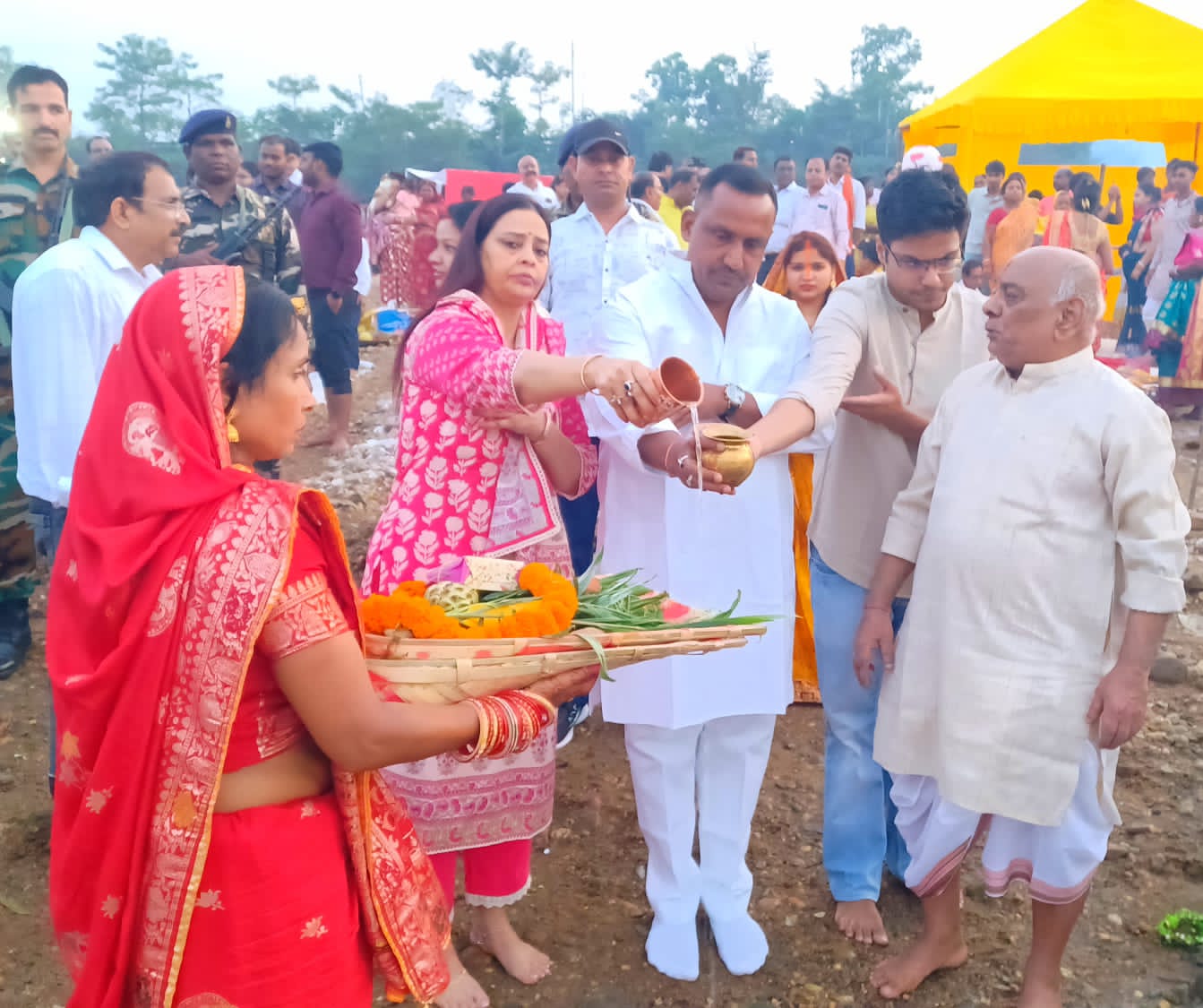 जमशेदपुर : छठ महापर्व के पावन अवसर पर पूर्व मंत्री बन्ना गुप्ता ने आज सोनारी दुमुहानी घठ घाट पर धर्मपत्नी सुधा गुप्ता एवं पुत्र मयंक गुप्ता के साथ डूबते सूर्य को अर्ध्य अर्पित किया। उन्होंने शहर के विभिन्न नदियों एवं तालाबों पर पहुँचकर श्रद्धापूर्वक अस्ताचलगामी सूर्य को अर्घ्य दिया और समस्त व्रतियों एवं नगरवासियों के सुख, शांति और समृद्धि की मंगल कामना की।